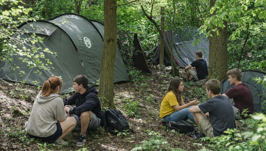 Wir gestalten einen sicheren und lebendigen Erfahrungsraum in der Natur, in dem Jugendliche Neues ausprobieren, Gemeinschaft erleben und sich selbst in einem anderen Rahmen begegnen können. Abenteuer, gemeinsames Tun und Zeit im Wald wechseln sich ab mit Momenten des Austauschs und der Reflexion.